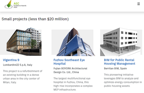 - También hay una categoría de “Innovador del Año” por tercer año, que reconoce a los profesionales de AEC que impulsan la transformación digital para reinventar la práctica del diseño y la construcción. Estos innovadores están liderando la industria hacia el futuro de la fabricación al crear nuevos flujos de trabajo, aprovechar los datos para encontrar valor y desarrollar estándares en las diferentes regiones.