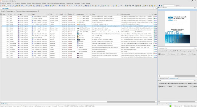 - El primero es el denominado “Normativa” por su naturaleza de cumplimiento en algunos casos obligado, cuenta con un completo listado de estándares BIM, protocolos, mandatos, LOD, plantillas de BEP, y requisitos. Con un apartado específico de “Objetos BIM” con referencias “Product Data Templates”, y guías de desarrollo de objetos BIM.